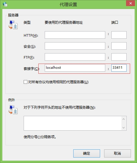 注意:SOCKS 代理地址为本地即 localhost,所在只要指定对应的代理地址与端口号则可以使用这个代理。