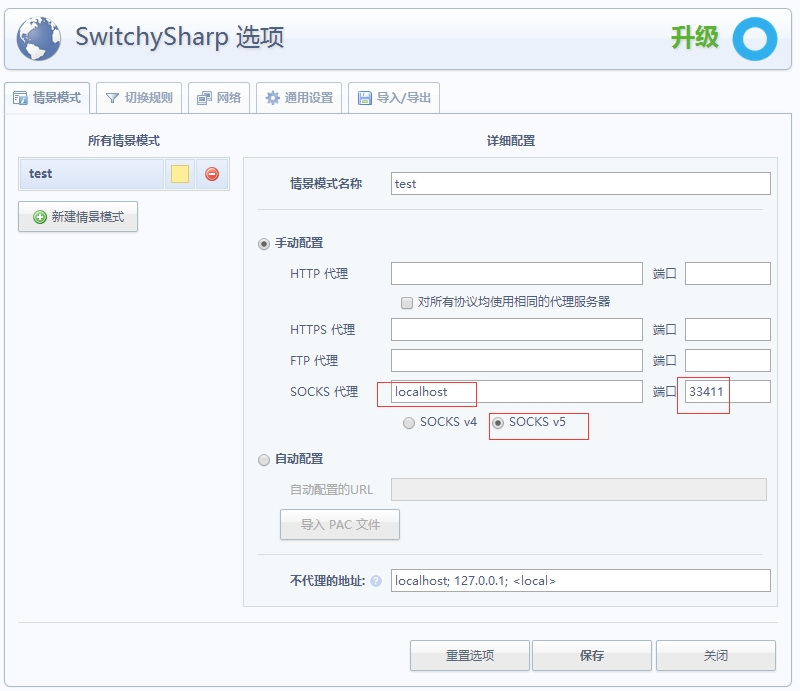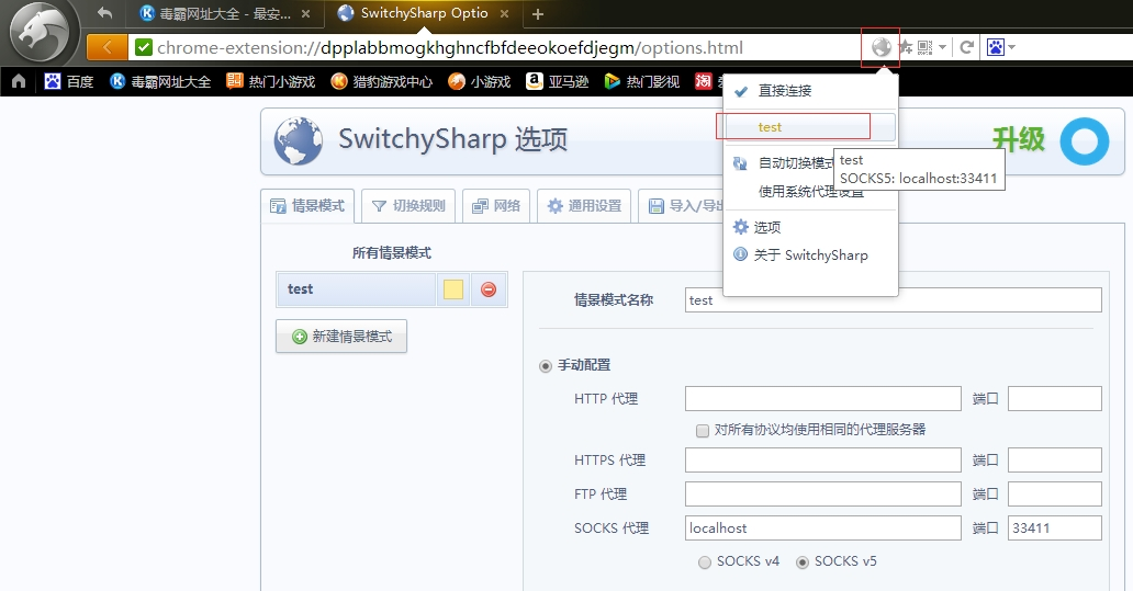 进入 Proxy SwitchySharp 配置 (创建一个 test)