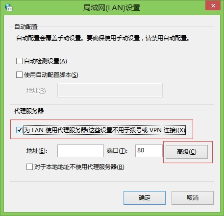 点击局域网设置,勾选 为 LAN 使用代理服务器