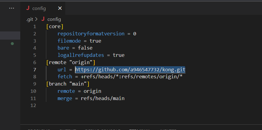 点击左上角三横线,打开.git/config 文件进行配置仓库信息