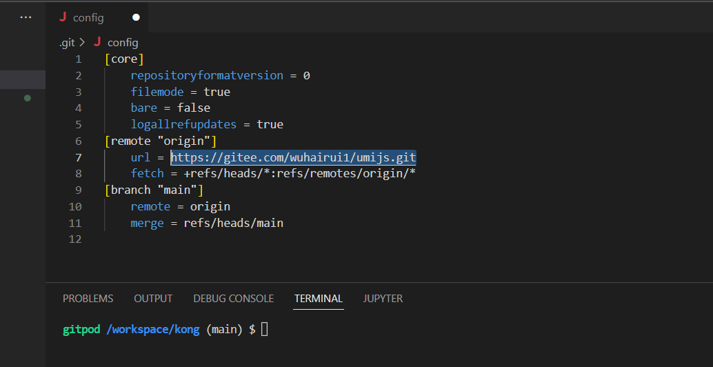 更改里面的 url 为 gitee 仓库的地址,保存即可。