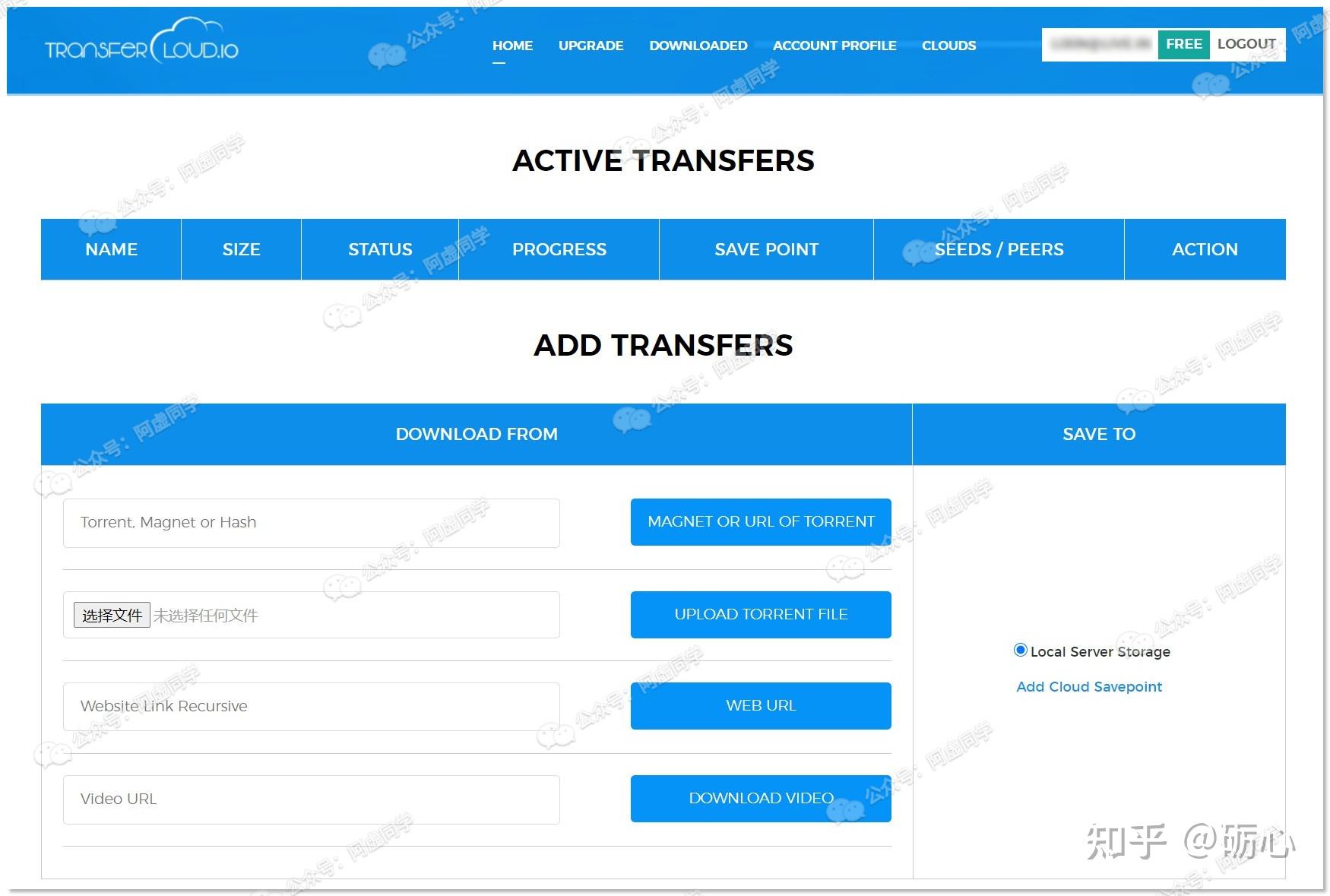 免费用户也可以可以远程上传(限速 500 Kb/s)到 Google Drive Dropbox、One Drive 等网盘中