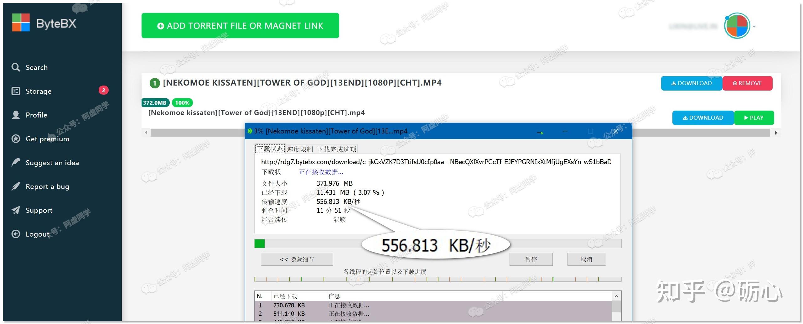 - ZbigZ(http://zbigz.com)限制离线文件大小 100MB,限制下载 150 Kb/s