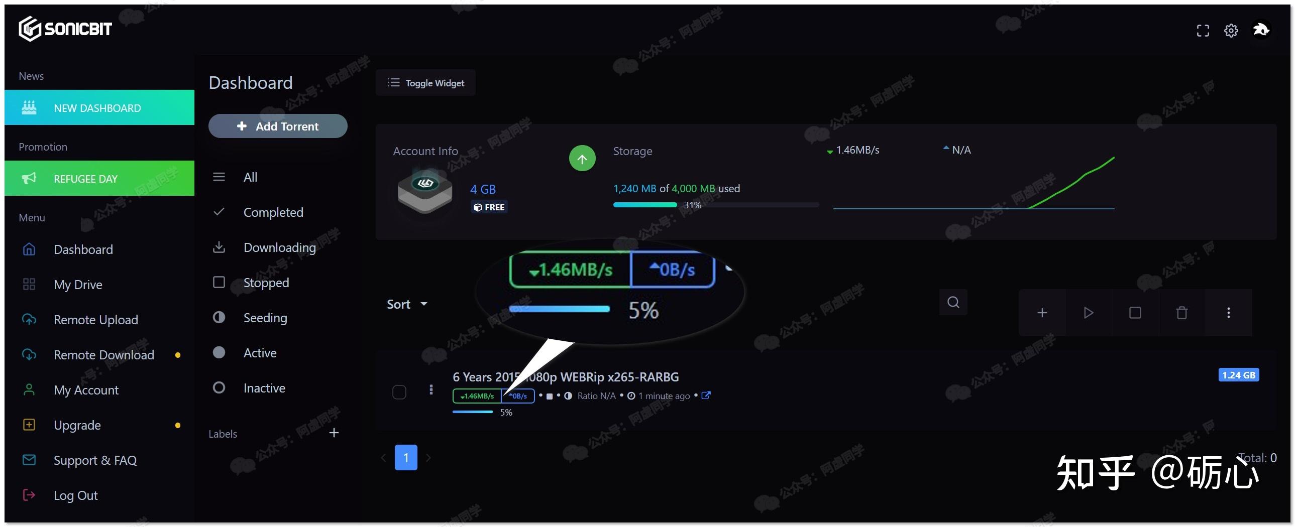 - Bitport(http://Bitport.io)免费用户 1GB 离线空间,只能同时下载一个种子,一天只能离线下载一个种子